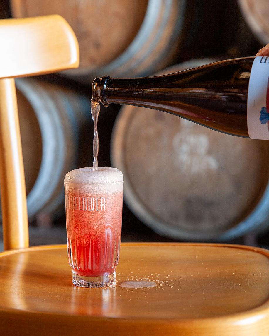 This 2023 version was made with a barrel aged base beer brewed with gentian and wormwood in the kettle. This was married with stemmed and destemmed morello sour cherries and freshly pressed Pinot Noir skins from M&J Becker in the Hunter Valley NSW.